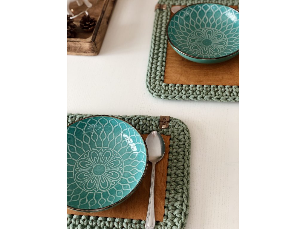 Háčkované prostírání hranaté je ručně vyráběná podložka pod talíře, která se používá k ochraně jídelních stolů. Háčkované prostírání kombinuje funkčnost s designem a nabízí praktické řešení pro ochranu jídelního stolu, zlepšuje stabilitu nádobí a vytváří příjemnou atmosféru při stolování.